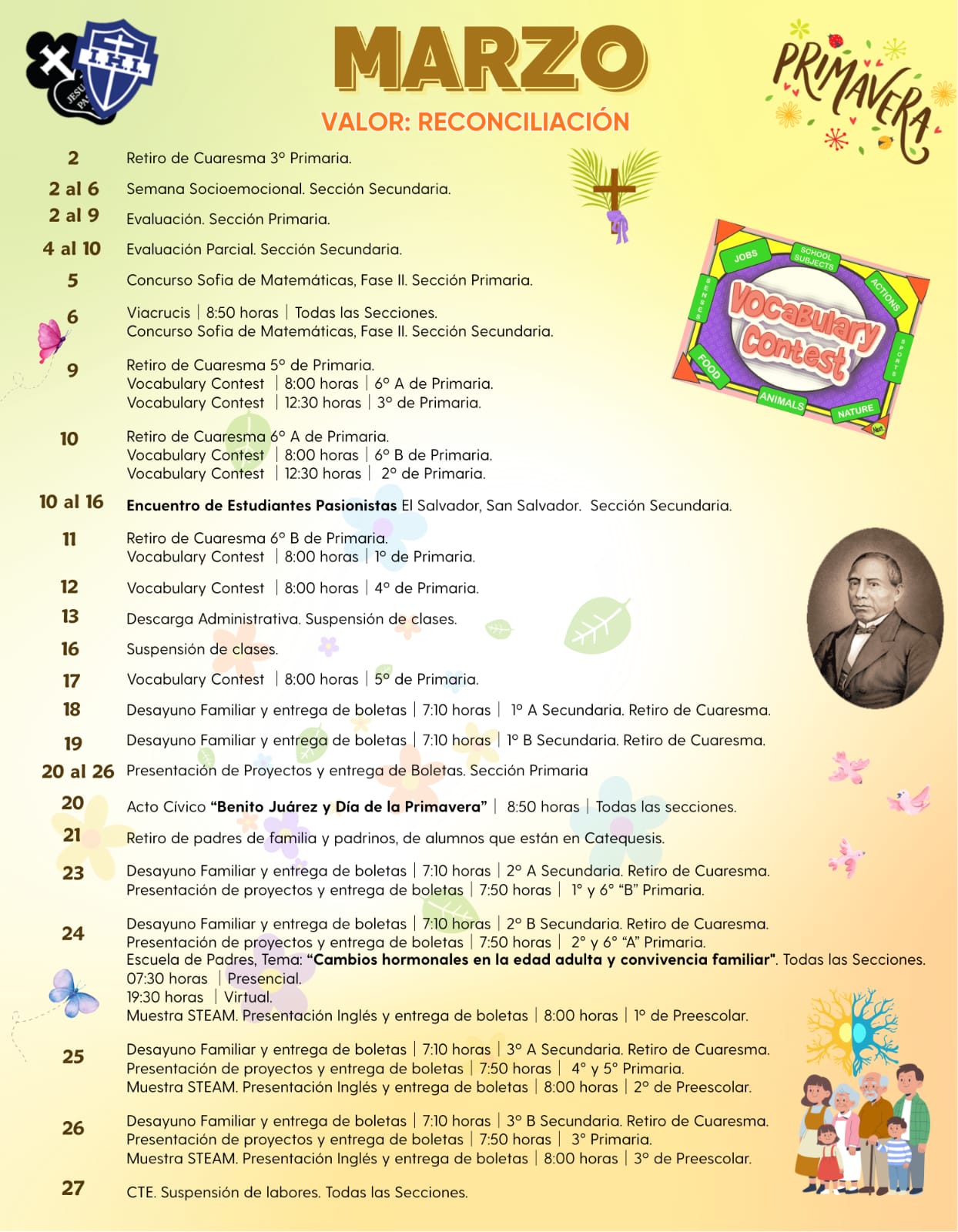 La comunidad educativa nos distinguimos por la vivencia y compromiso pasionista, nuestro ser y quehacer lo hacemos con alegría, trato amable y cercano, para que los alumnos y padres de familia perciban en cada una de nuestras acciones los valores que imperan en nuestra institución.
