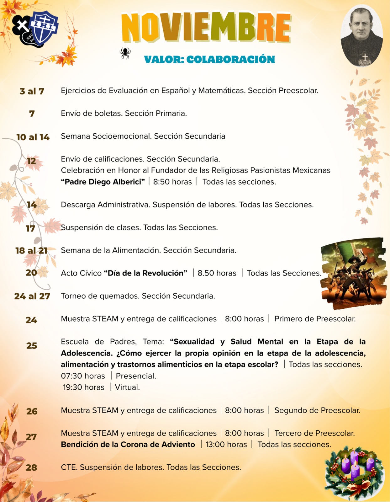 Retiros, salidas misioneras, muestras académicas y concursos, festivales, eventos artísticos, convivencias, paseos didácticos y recreativos.